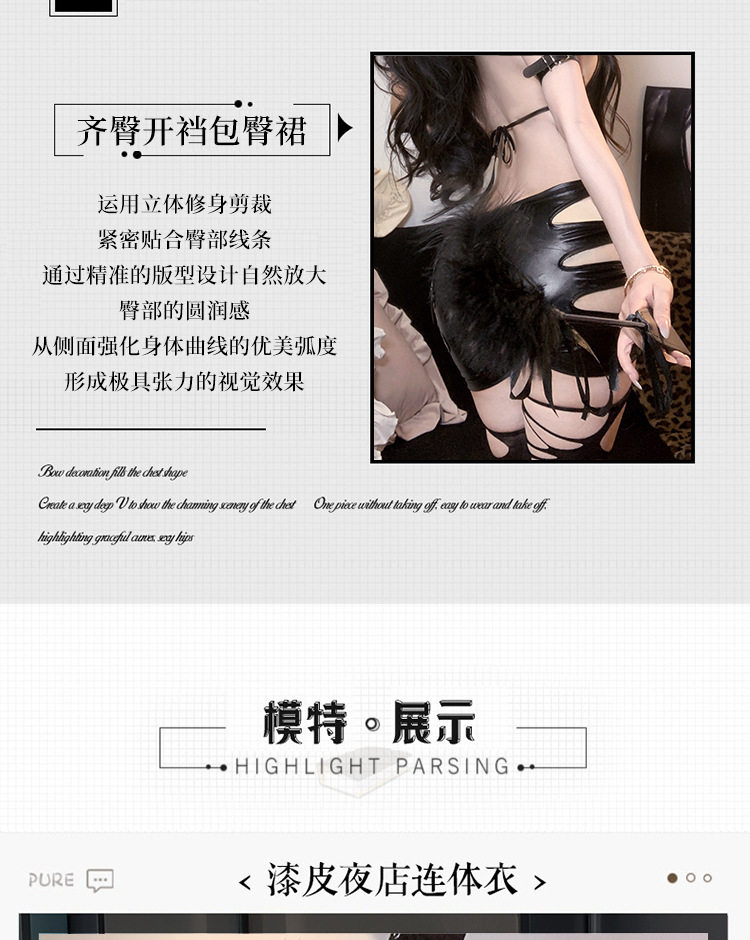 「PRE-ORDER」Dark Bunny Girl Patent Leather Lacing V-Neck Cut-out Dress