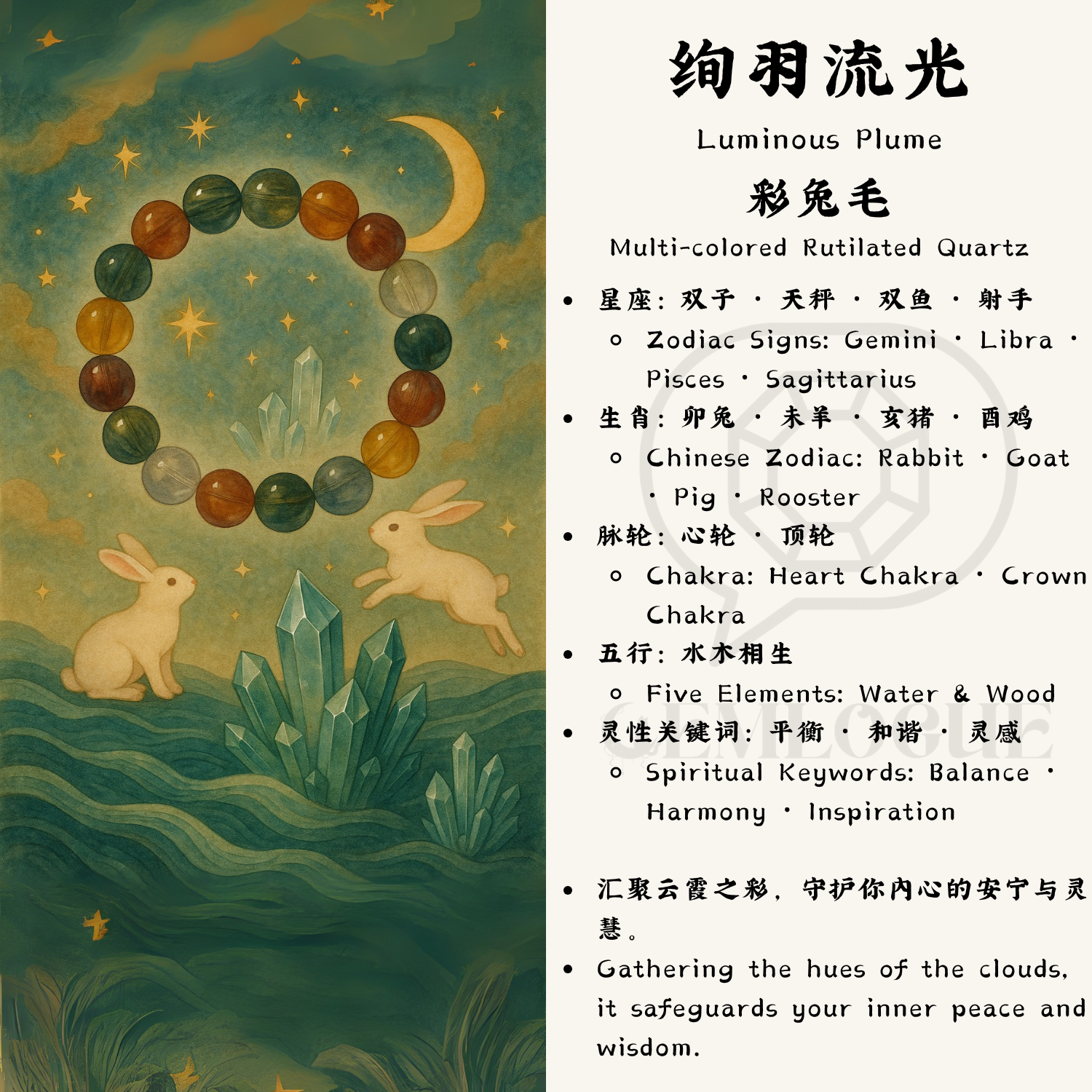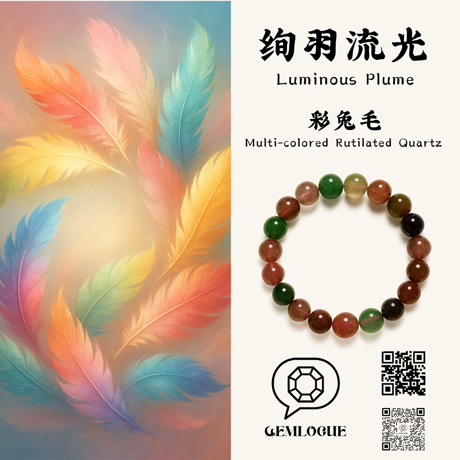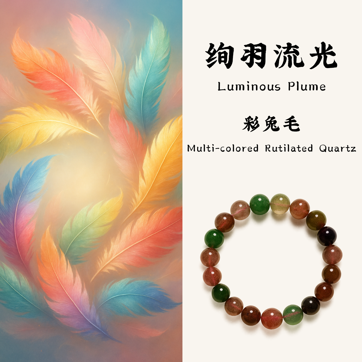 Luminous Plume|Multi-colored Rutilated Quartz
